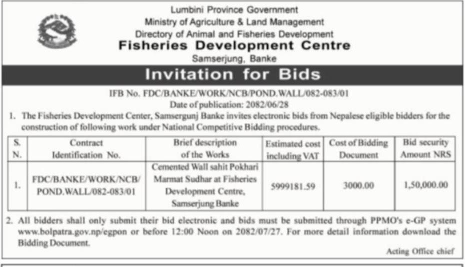 E-Bidding about Cemented Wall Sahit Pokhari Marmat Sudhar
